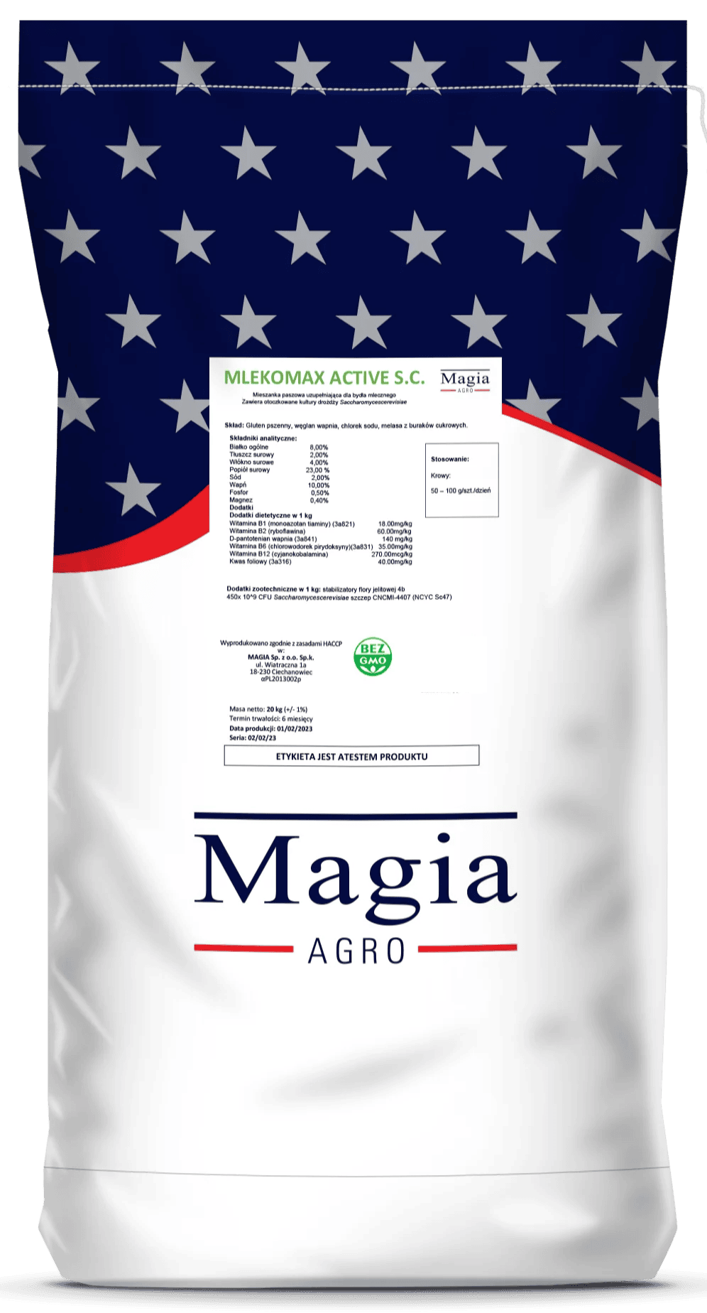 • komórki drożdżowe Saccharomyces cerevisiae CNCMI-4407 (NCYC Sc47) 450×10^9 CFU aktywnie pochłaniają tlen, który trafia do żwacza